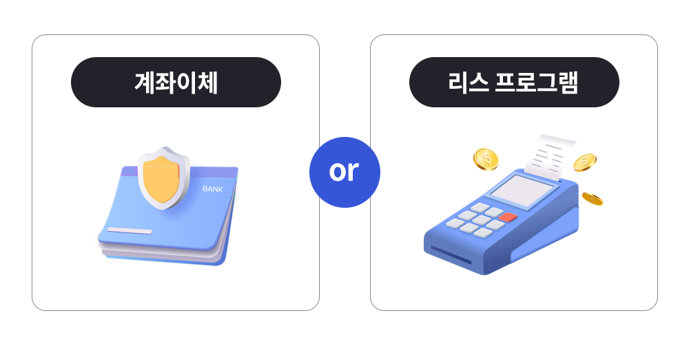 계좌 입금 또는 36개월 무이자 리스 프로그램 제공